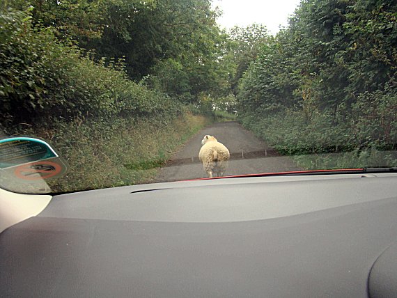 blocks the way in the lane on the way back to the farm |